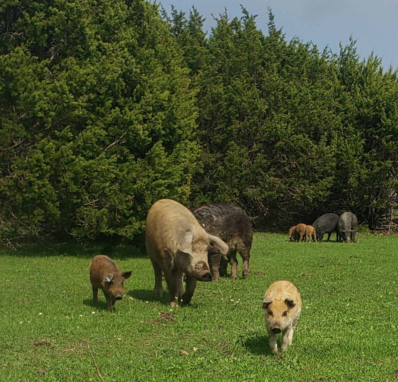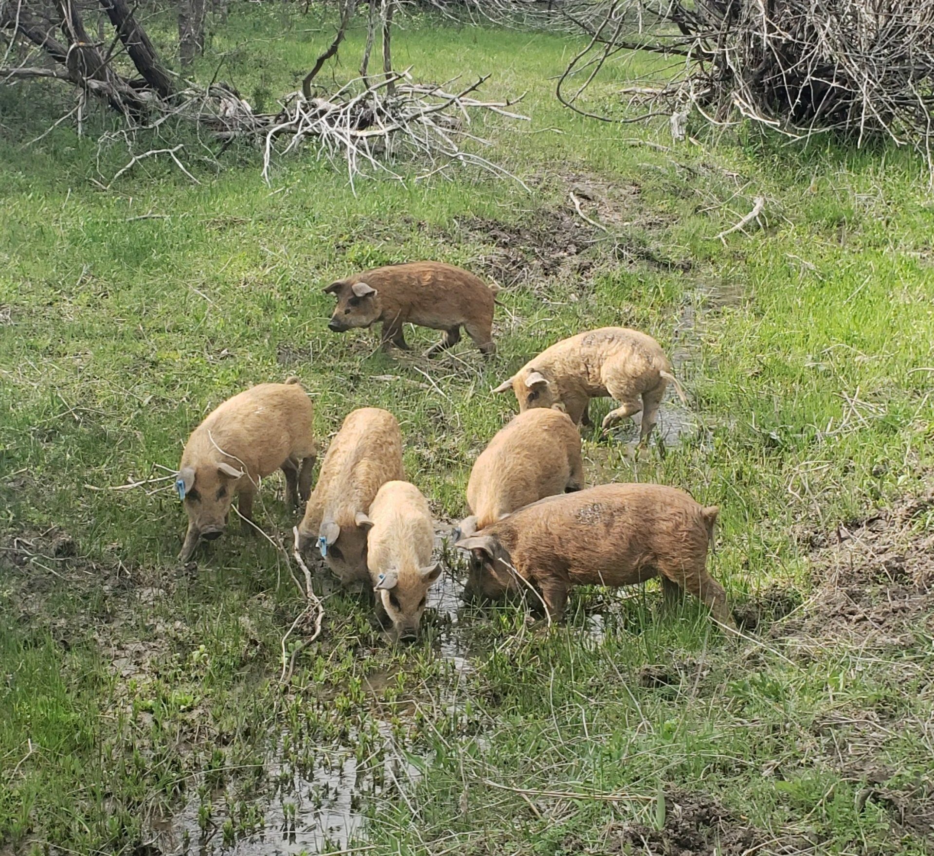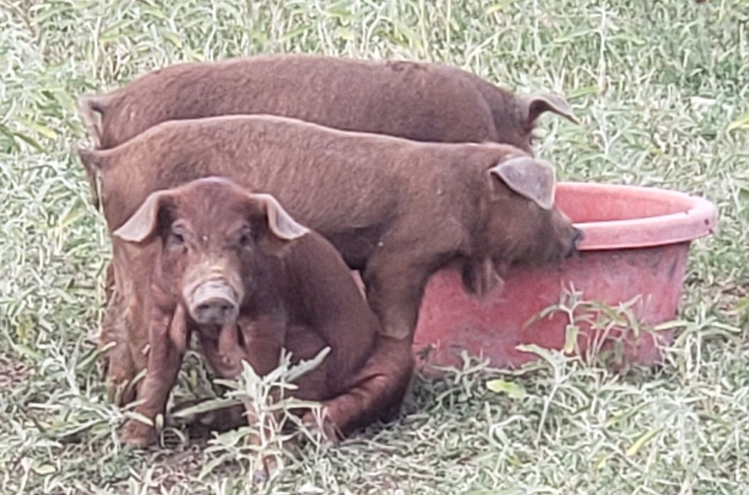 We are raising both registered, purebred Red Wattles, and Mangalitsa crosses.