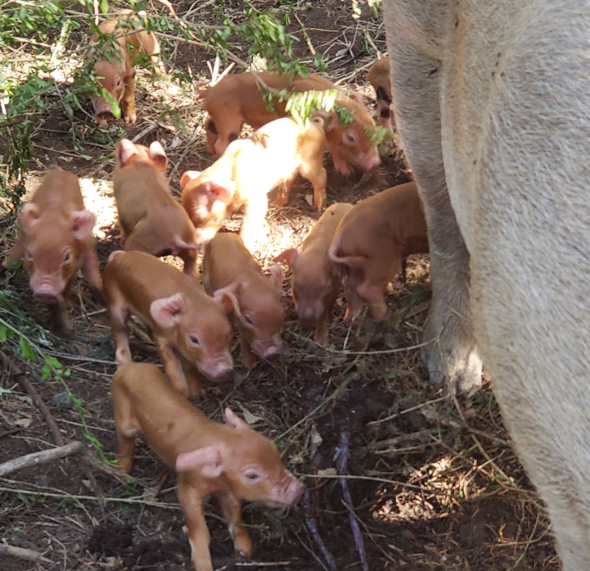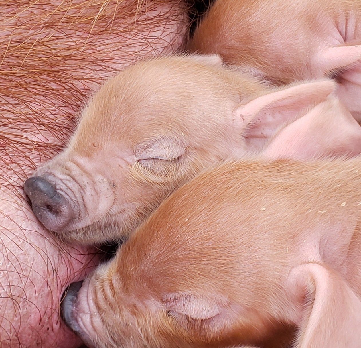Piglets from our purebred RWPP and RWHA registered red wattle/waddle foundation stock.