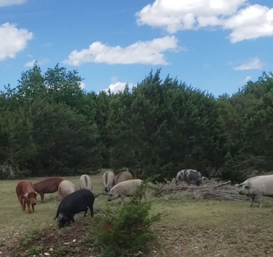 With a dozen sows farrowing year 'round, we almost always have piglets and feeders available. We are happy to talk pigs any time and visitors are welcome to come out and meet the herd. If you are looking for a feeder, a breeder or a pet, we'll help you find the right one! We can also grow your pig out for you if you don't have your own space.